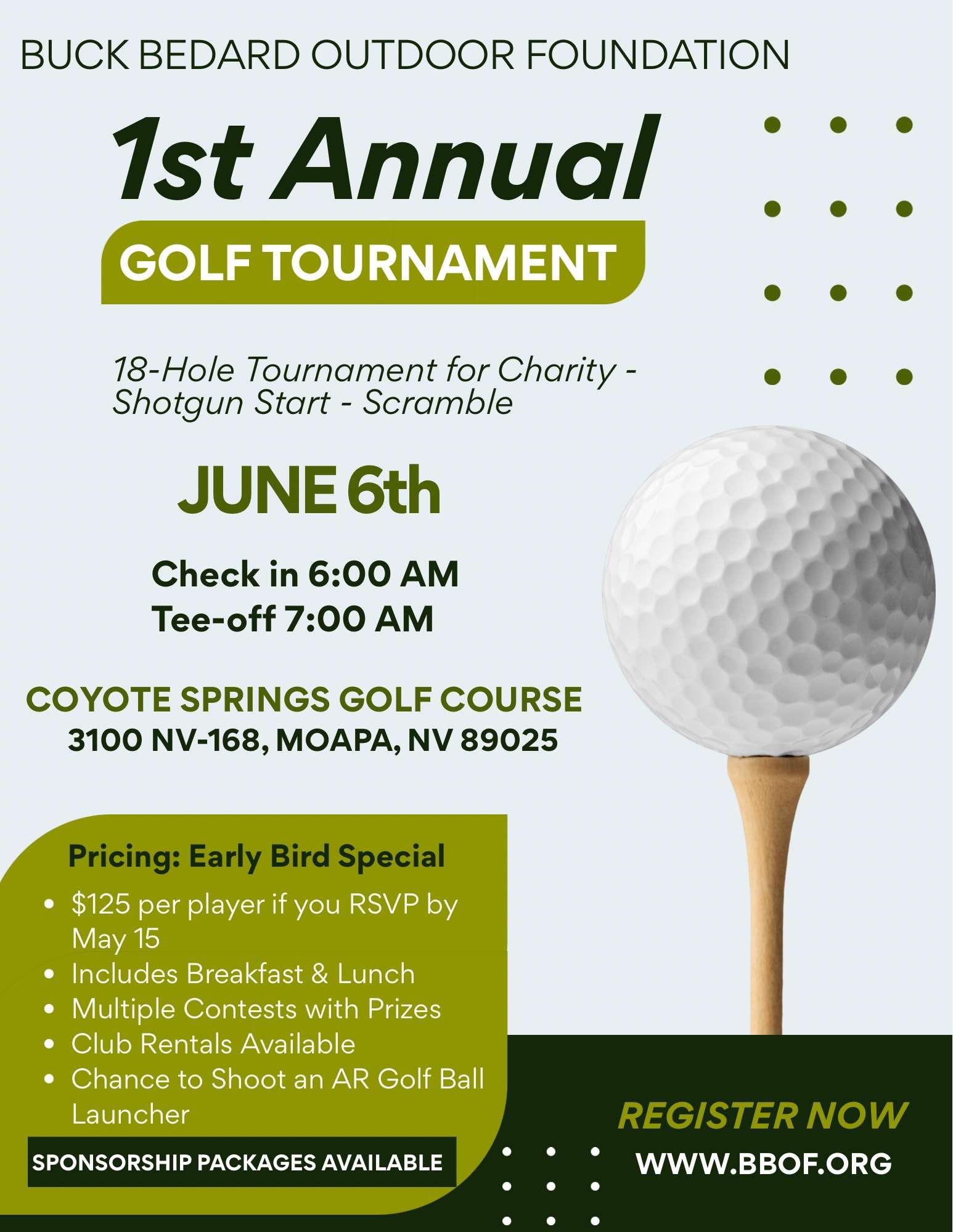 • EARLY BIRD SPECIAL – $125 per player — RSVP by May 15